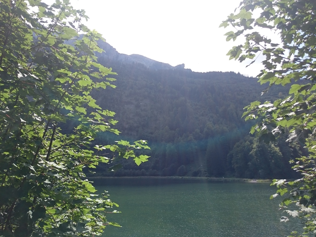 Blick vom Parkplatz Richtung Obersee, rechts das Plattenkreuz, zu dem ich einen kurzen Abstecher machen werde