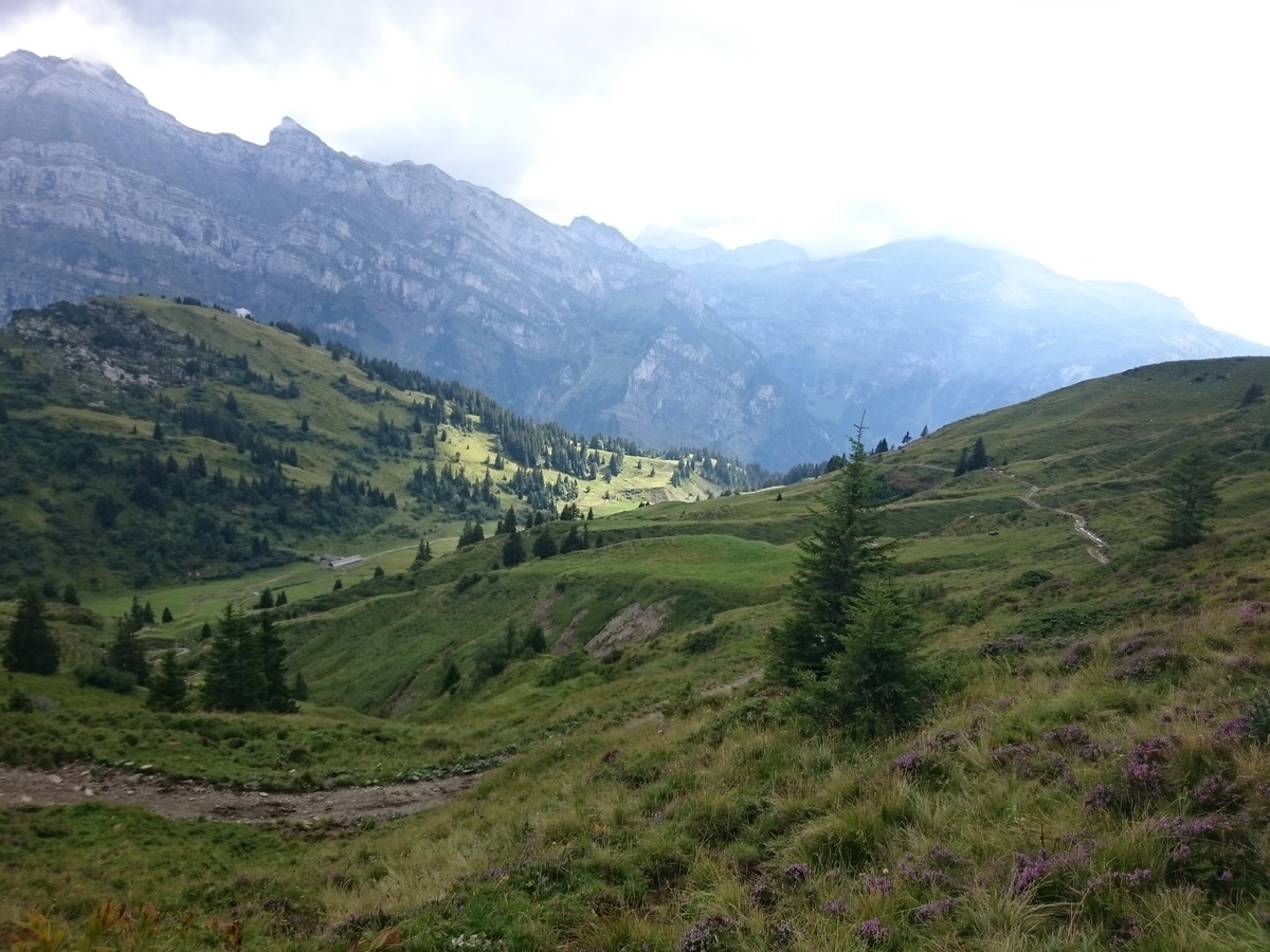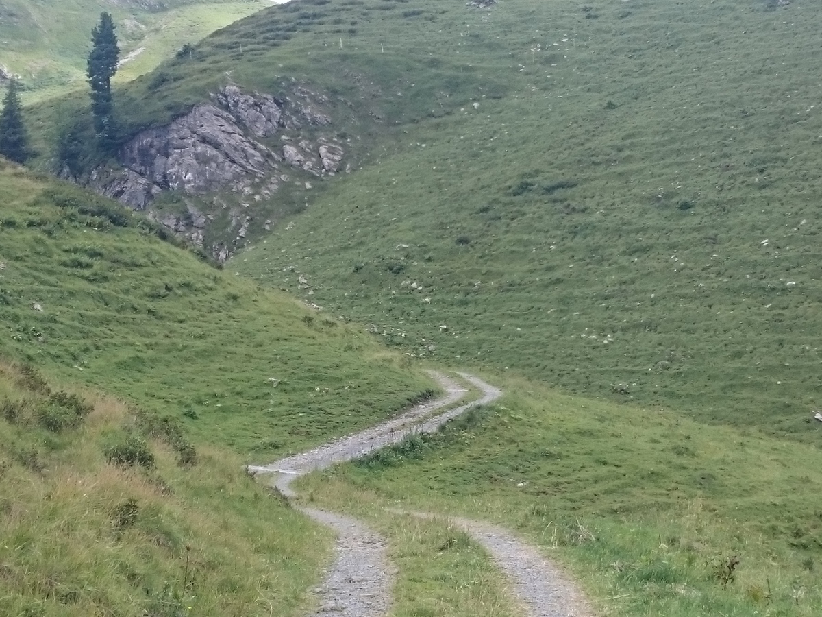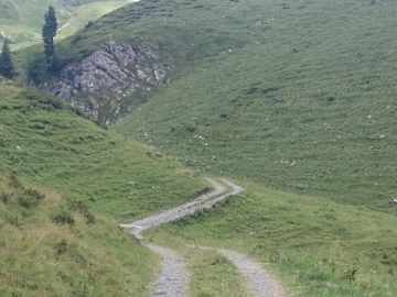 Der Weg zur Alp Oberlängenegg; die Abfahrt Richtung Klöntal