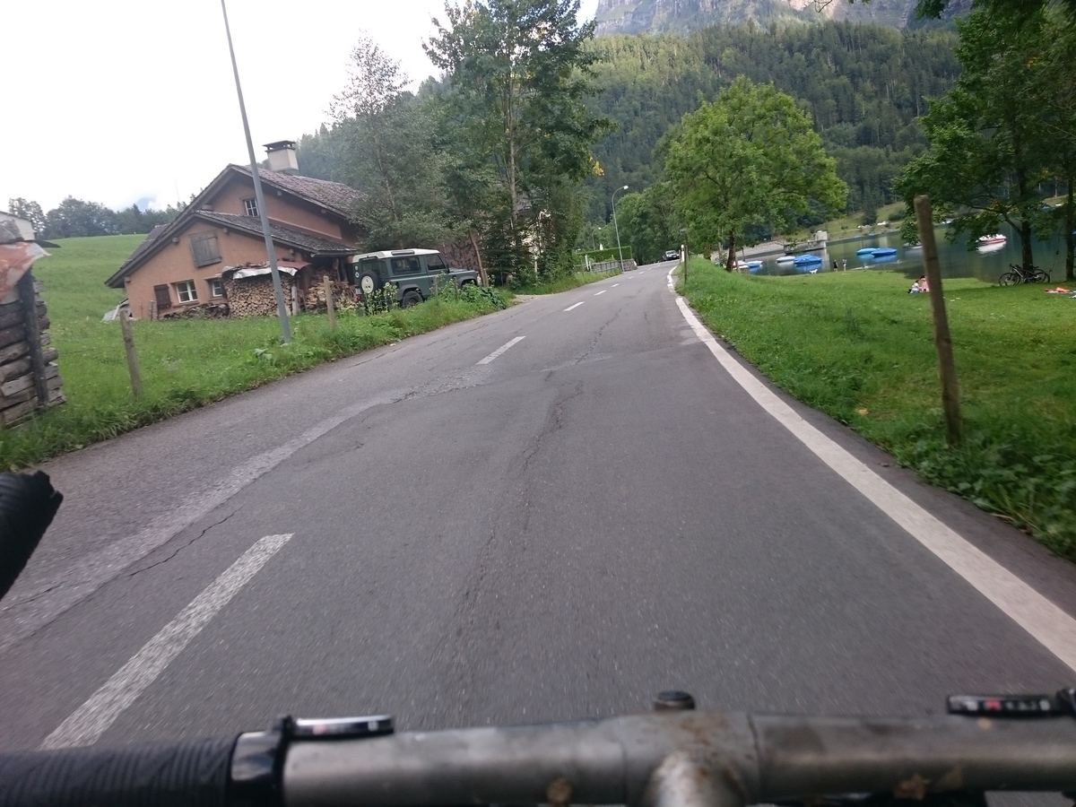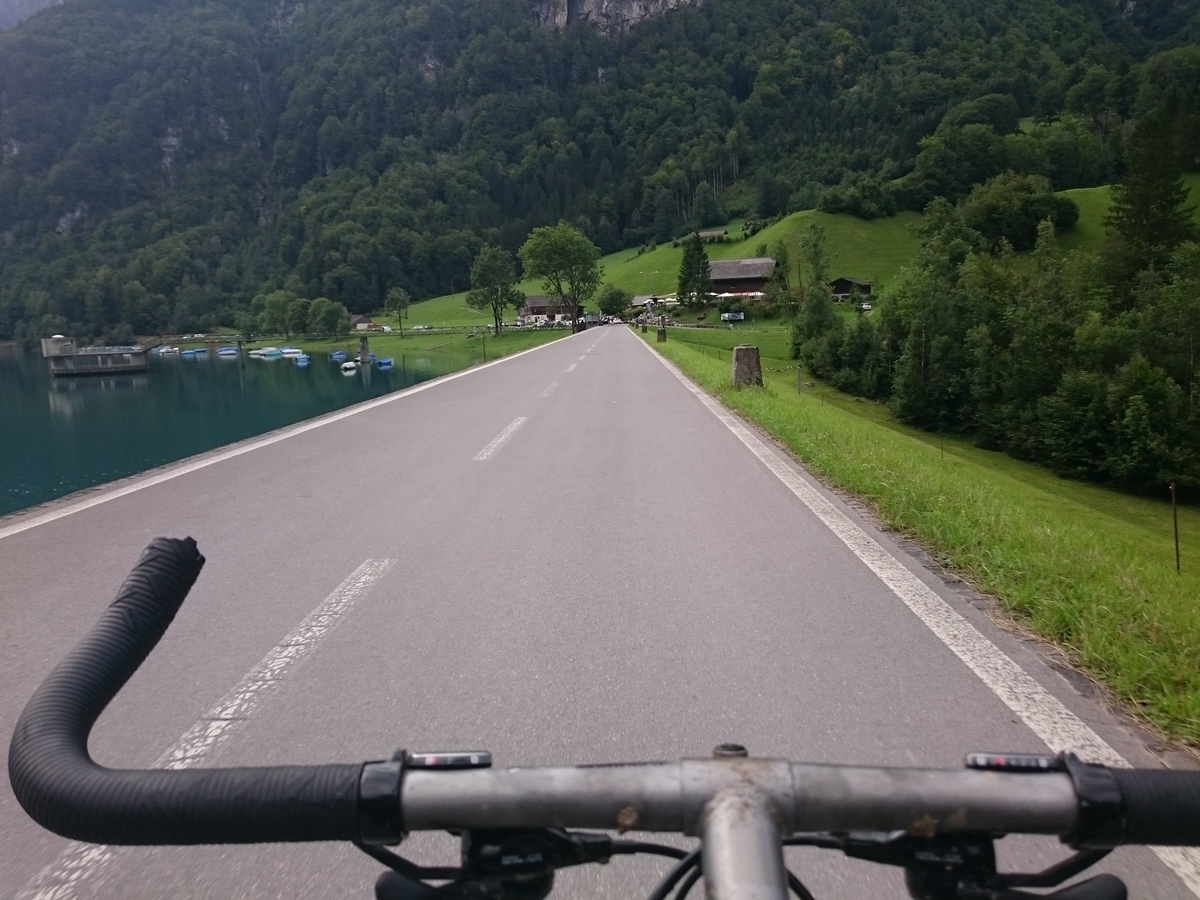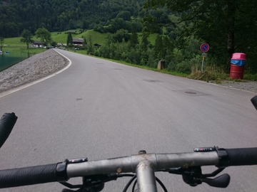 Fahrt über die Staumauer, dann nach rechts, hinunter nach Netstal und zurück nach Näfels