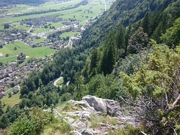 Die Oberseestrasse unter mir; der Ausgangspunkt zum Aufstieg zum Plattenkreuz