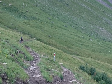 Blick zurück auf die letzen Meter des Weges vor der Passhöhe