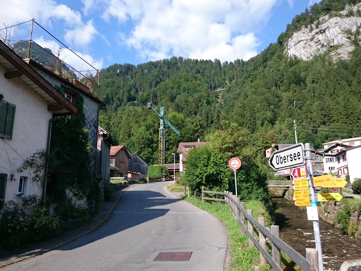 Ab hier steigt die Strasse steil an Richtung Obersee.