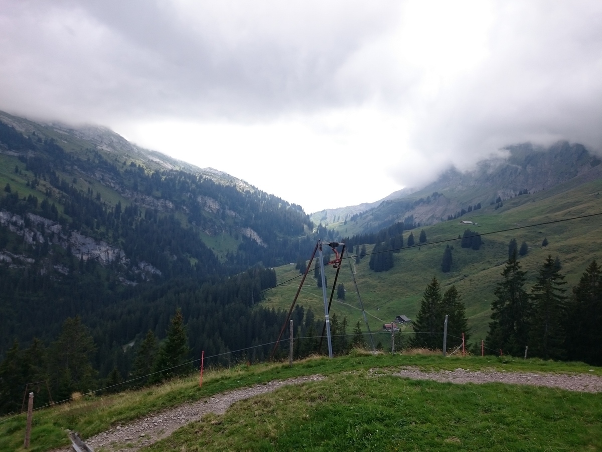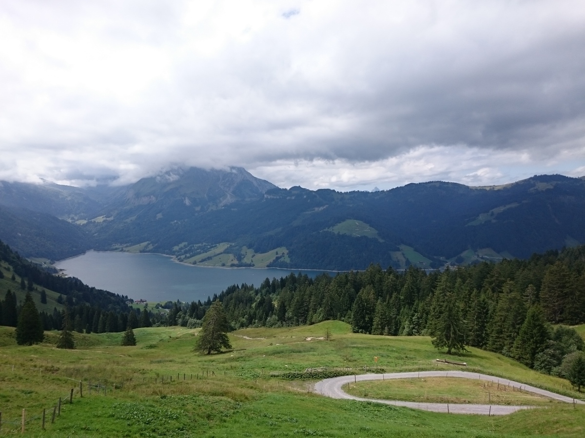 Von hier geht es auf gut ausgebauten Strassen hinunter zum Wäggitalersee. Am hinteren Ende des Tales ist der nächste Aufstieg zu sehen.