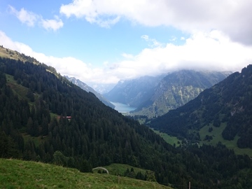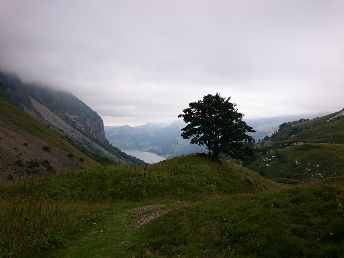 Nach einem steilen Anstieg schaue ich ein letztes Mal auf den Wäggitalersee zurück.