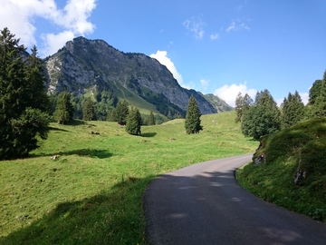 Die letzten Meter auf der asphaltierten Strasse in einer wunderschönen Umgebung