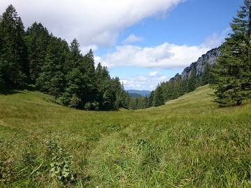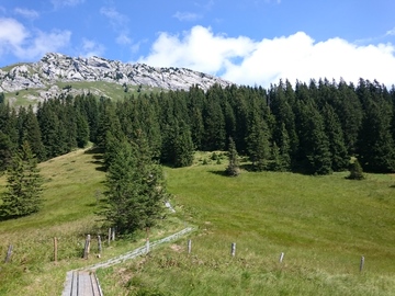 Hier geht es weiter – nun auf Schwyzer Boden – in Richtung Wäggital. Weil es allgemein sehr trocken ist, komme ich ohne nasse Schuhe (zu Fuss) durch das Moor.
