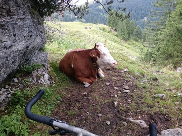 Sie lässt sich nicht stören – auf dem Weg von der Alp Trepsen zur Schwarzenegghöchi.